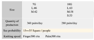 1、沉降片編織系統:生產出的手套更富彈性、韌性,更貼合手形。